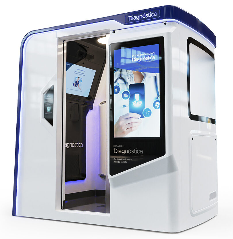 Multidiagnóstica: estação compacta de triagem e exames remotos, ideal para espaços corporativos, ambulatoriais e clínicos.