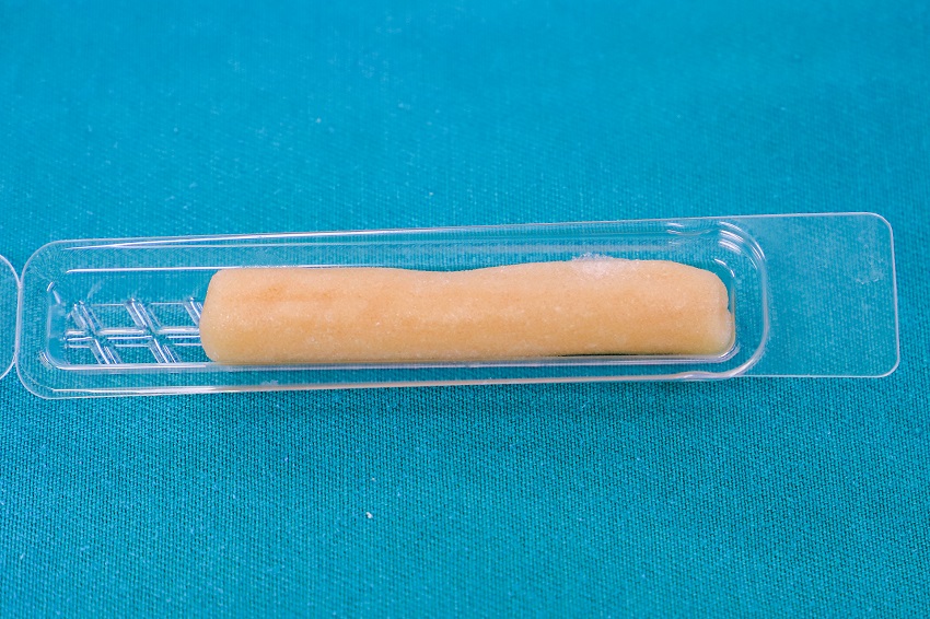 Apesar das tentativas de tratamento clínico e acompanhamento ambulatorial intensivo, a infecção persistiu, exigindo nova estratégia terapêutica. Diante do fracasso das medidas convencionais, a equipe elaborou um plano para utilização de um material especial de alto custo: o biovidro. “O grande diferencial do biovidro é que ele não apenas preenche o defeito ósseo, mas modifica o microambiente local, tornando-o hostil às bactérias e favorecendo a consolidação óssea”, destaca Bordinassi. “É o cenário ideal para casos como este. Conseguimos tratar a infecção e reconstruir o osso simultaneamente”, complementa Menegazzo.