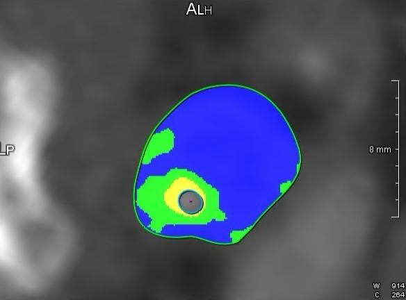 Os pesquisadores usaram um software de análise de imagem que aplica algoritmos de IA para identificar automaticamente o tipo de tecido dentro da placa — gordura, fibra ou cálcio — com base nos diferentes tons captados pela tomografia. O sistema gera uma imagem colorida e tridimensional da artéria, destacando as áreas de maior vulnerabilidade, que são analisadas pela residente em radiologia Gabriela Carboni e pelo chefe do Serviço de Radiologia do Hospital Moinhos de Vento, Henrique Guerra. A ideia do estudo é inicialmente descrever a característica das placas para que futuramente o protocolo possa ser usado na prática clínica.