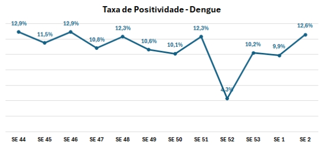 Ao mesmo tempo, as semanas mais recentes já indicam retomada da positividade, com aproximação aos níveis tradicionalmente observados neste momento do calendário epidemiológico.
