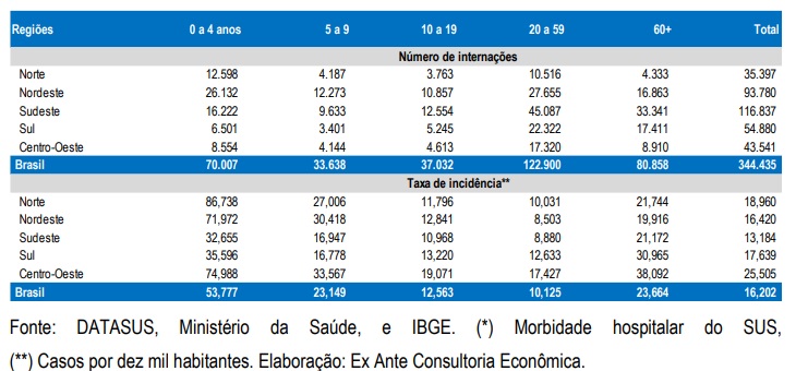 Desse total, aproximadamente 70 mil hospitalizações ocorreram na faixa etária de 0 a 4 anos, enquanto mais de 30 mil afetaram crianças de 5 a 9 anos.