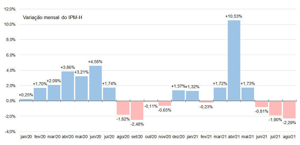 Já em relação aos últimos 12 meses encerrados em agosto/2021, a elevação apurada no IPM-H (+7,85%) é impulsionada pelas variações registradas nos seguintes grupos: aparelho digestivo e metabolismo (+28,27%), sangue e órgãos hematopoiéticos (+23,80%), sistema musculoesquelético (+13,58%), imunoterápicos, vacinas e antialérgicos (+13,42%), órgãos sensitivos (+9,62%), aparelho respiratório (+7,10%), sistema nervoso (+6,51%), aparelho geniturinário (+5,84%), preparados hormonais (+5,25%) e agentes antineoplásicos (+4,21%).