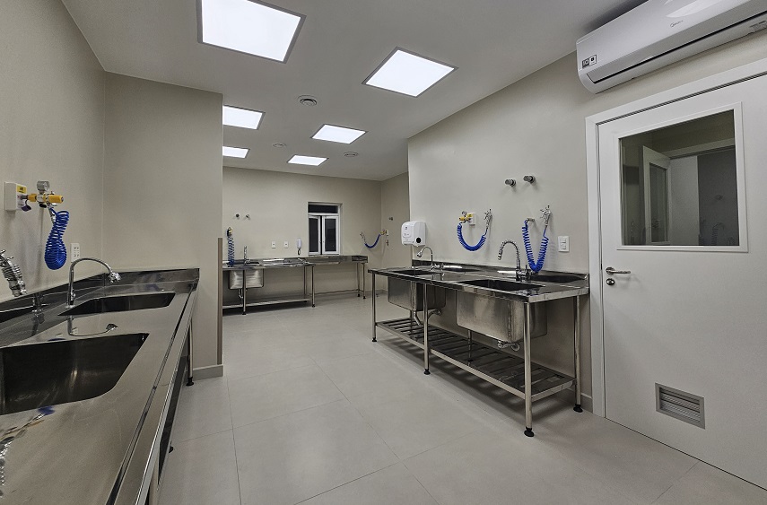 A outra novidade é nova Central de Material e Esterilização (CME), incorporando uma avançada e moderna estrutura para uma área vital do hospital, responsável pela limpeza, desinfecção, esterilização e distribuição de todos os materiais e instrumentos cirúrgicos utilizados nas diversas áreas da instituição. A importância do CME reside na garantia de que todos os equipamentos e instrumentos estejam livres de qualquer forma de contaminação, assegurando a segurança e a eficácia dos procedimentos médicos e cirúrgicos. Um CME eficiente não só protege pacientes contra infecções hospitalares, como também otimiza os processos operacionais, promovendo um ambiente de cuidado seguro e de alta qualidade.