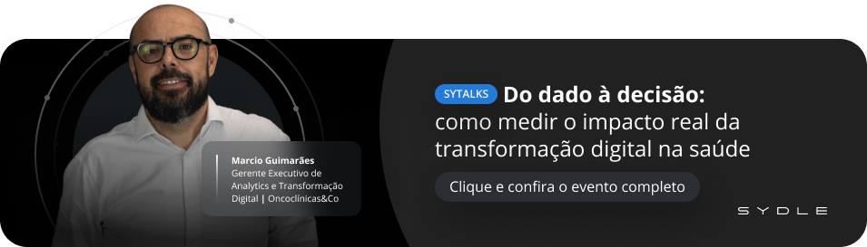 Como Marcio Guimarães (Oncoclínicas) destacou em sua participação no webinar SYtalks, é uma mudança de mindset, não apenas tecnologia. Essa cultura permite uma compreensão profunda dos pacientes, otimiza processos e melhora resultados clínicos e financeiros na gestão da saúde.